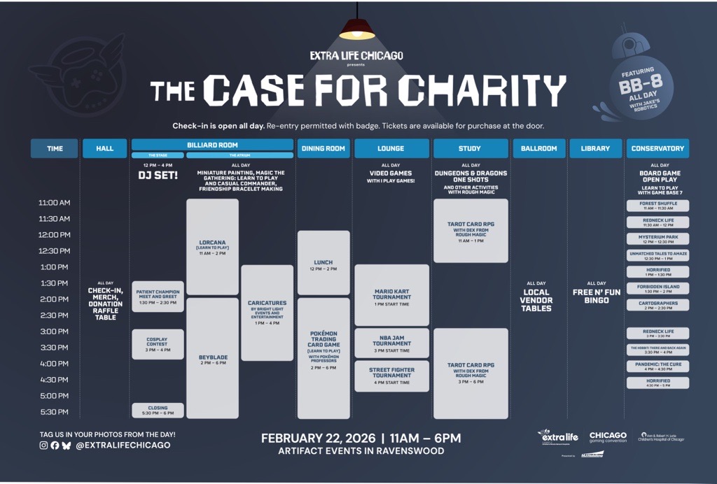 The Extra Life Chicago Gaming Convention (ELCGC) is a Chicago charity gaming convention, built to bring together players, creators, and fans for one impactful day of gaming for a cause. It’s where you can level up your fun while making a real difference for kids at Ann & Robert H. Lurie Children’s Hospital of Chicago.